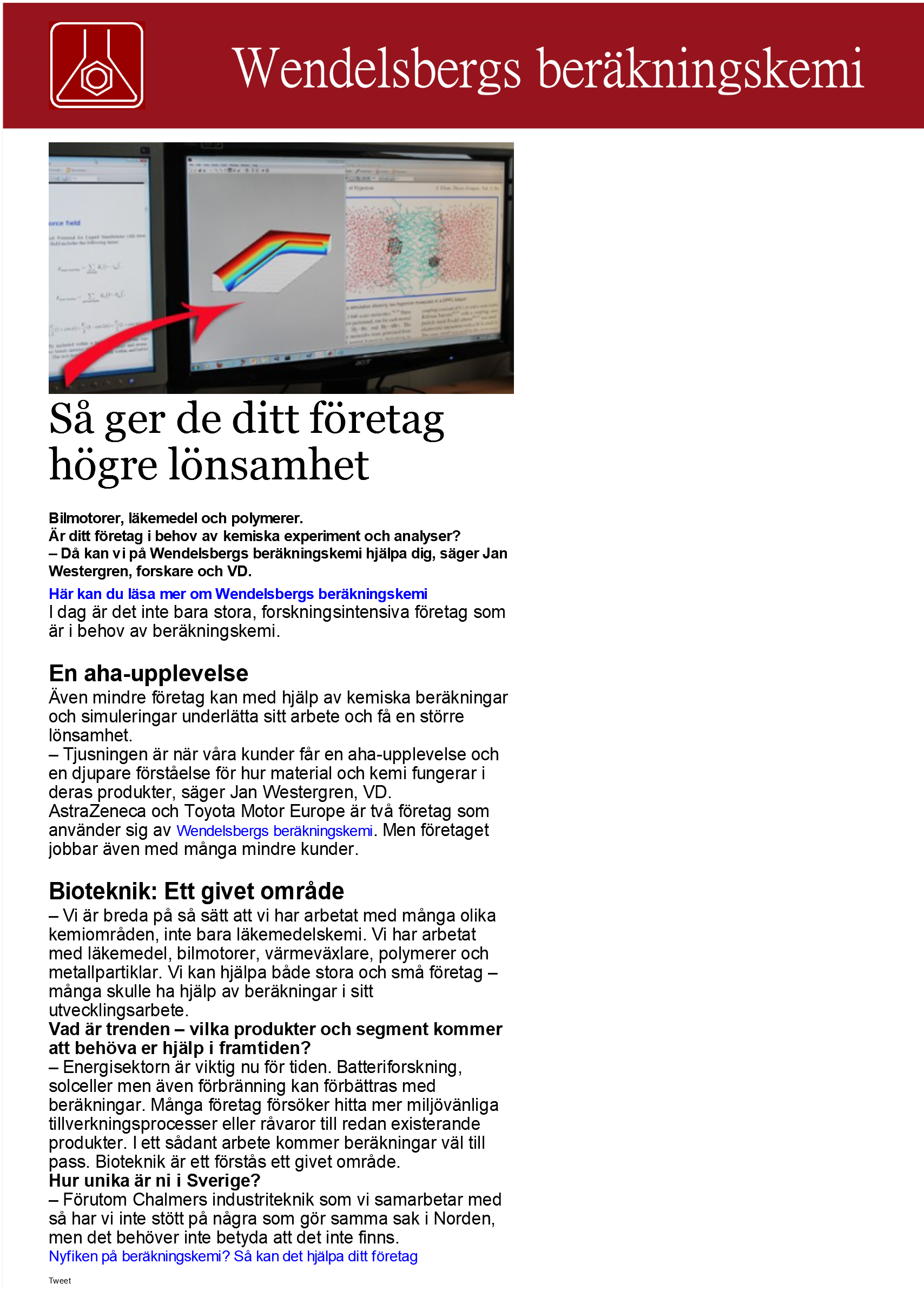 Advertisement in Aktuell Forskning (May 2009, Swedish only)